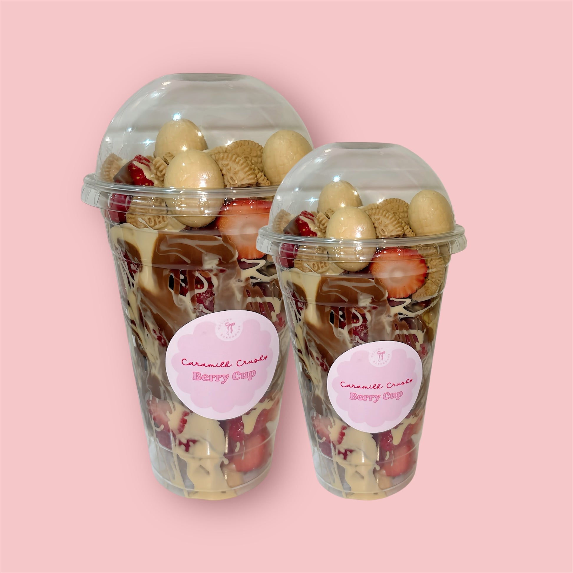 Fresh strawberries layered with silky milk chocolate, and caramilk drizzle. Topped with pieces of Caramilk Oreos and Caramilk Eggs.